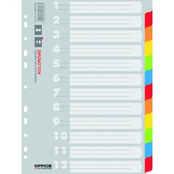 Separatoare carton color, A4, 170g/mp, 12 culori/set, Office Products