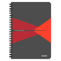Caiet de birou LEITZ Office, PP, FSC, reciclabil, A5, 90 coli, cu spira, dictando, rosu