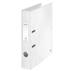 Biblioraft LEITZ 180 WOW, carton laminat, partial reciclat, FSC, A4, 52 mm, alb