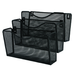 GroupDescription: #Set suporti de perete, fabricat din mesh metalic, lacuit. #Se monteaza pe perete. #Se pot utiliza ca set sau separat. #Gauri pentru agatatoare. #Colturile exterioare faciliteaza introducerea si scoaterea documentelor. #Dimensiuni individuale: 325 x 88 x 170 mm. #Dimensiuni set: 325 x 239 x 330 mm. #Culoare: negru. #Ambalare: 3 buc/set.