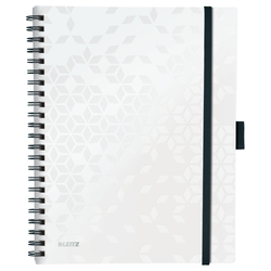 Caiet de birou Leitz WOW Be Mobile, PP, FSC, reciclabil, A4, 80 coli, cu spira, dictando, alb